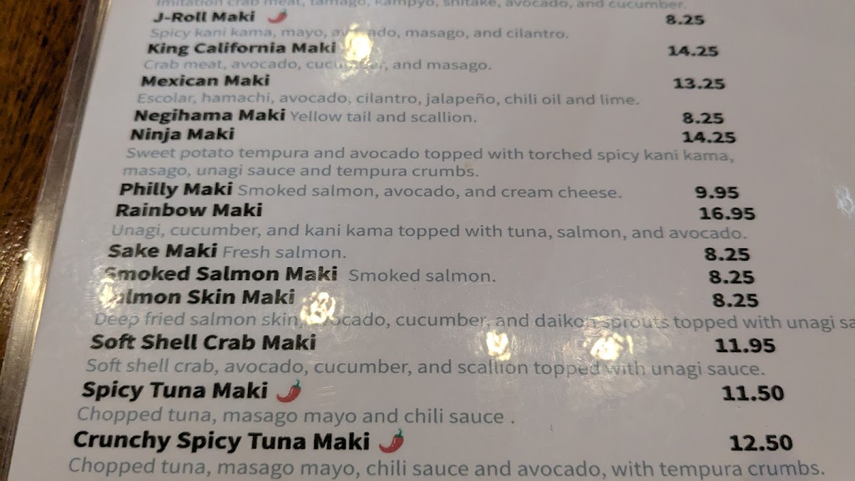 “ My family ordered Mexican sushi, tradition Japanese Raman noodles, Japanese chicken wing. It’s delicious. They have indoor and outdoor seating. We dine in indoor because of the smoke from Canada’s fire. Service is good. I recommend you to try this amazing place. The high chairs are a bit small and uncomfortable.other than that everything is fine. ”